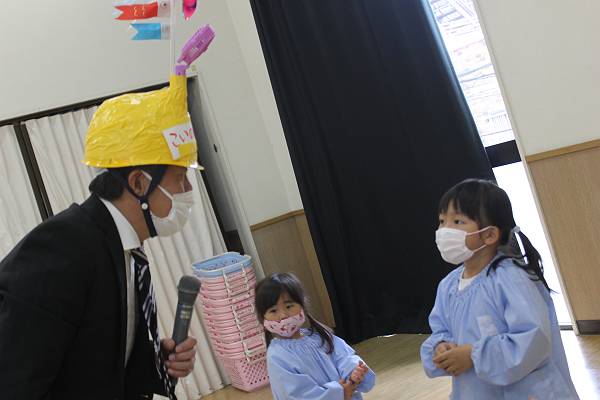 園長先生が「鯉は、一生懸命諦めずに川を上って強くなるんだよ」とお話してくださいました。