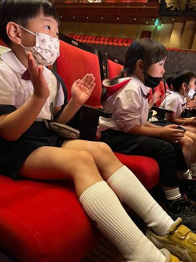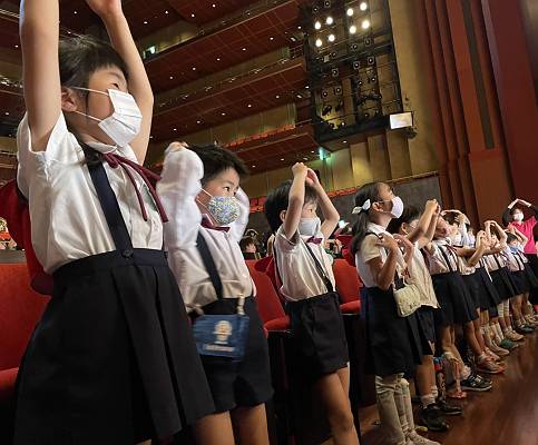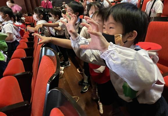 かっこよく1人で叩いている黄組さんを見て目を輝かせていました