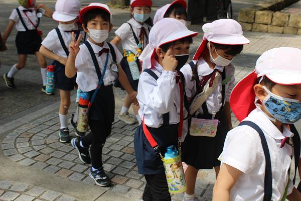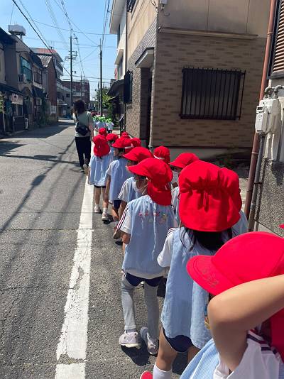 突然の避難訓練ドキドキ緊張した様子のみんなでしたが、マスクの上からしっかり手でお口を塞いで園庭に避難することができました