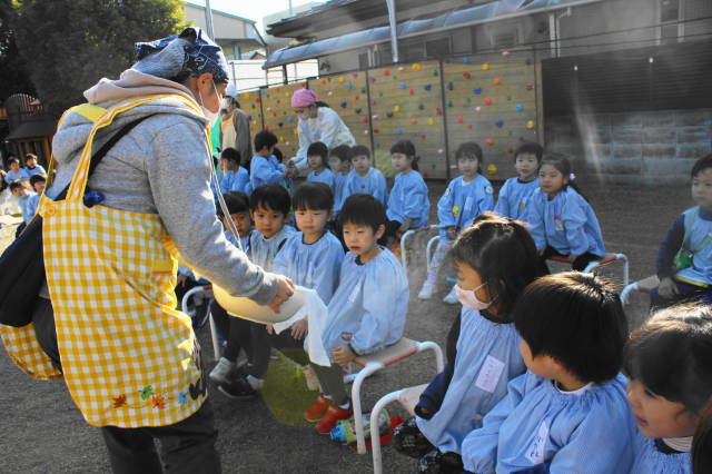 桜組さんはおもちができる様子をじっくり見学しましたよ!