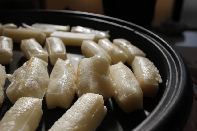 おもちをついた後は切り餅を焼いてクラスごとに食べました♪