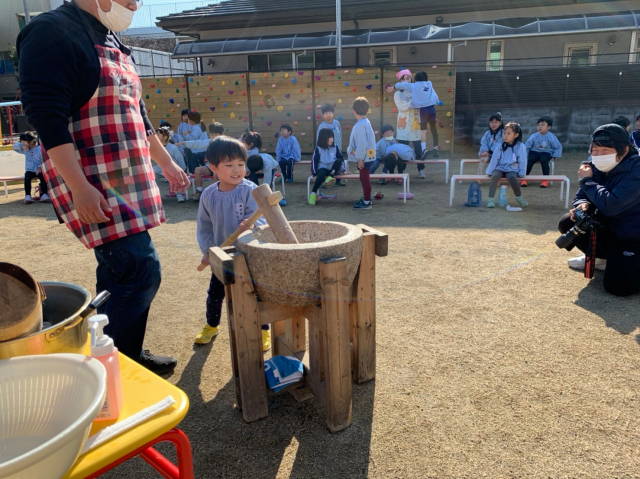 今日は、冬の風物詩おもちつき遊びをしました♪