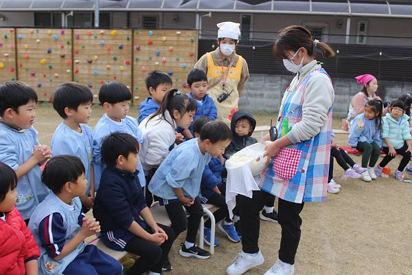 「おもちだ!」「どうやって作るの?」とみんなおいしそうなおもちに興味津々でしたよ!