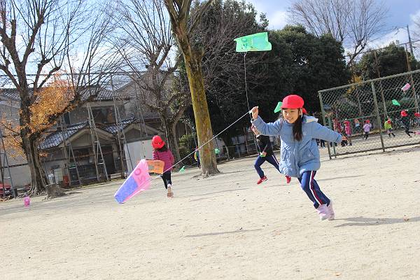 幼稚園生活では最後の凧あげ…