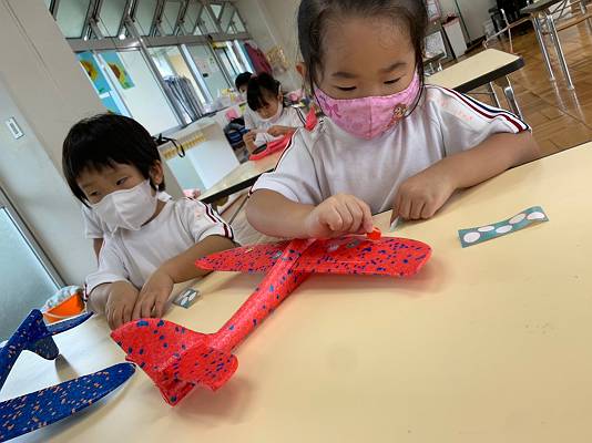色が選べたら飛行機にシールやペンで可愛くデコレーション