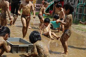 おふろみたいに泥んこの中であそんでいるお友達も