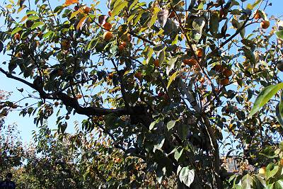 オレンジ色が濃いおいしいそうな柿を見つけると、脚立に上って先生とくるくるもぎ取りました!