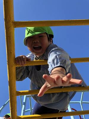 体育遊びでも行っている鉄棒にチャレンジしているお友達もいます。