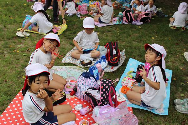 川遊びで遊んだ後はみんなおまちかねのお弁当タイム