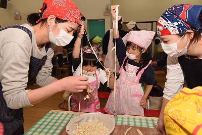 「うどんって小麦粉からできてるん?!」「え~!こうやって作るんや」
