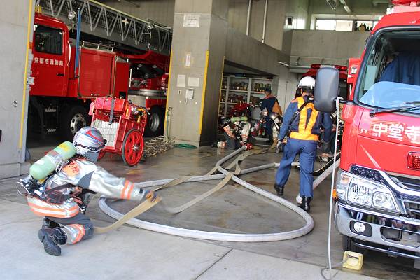 実際にホースや消防車の中身を見学させてもらい、
