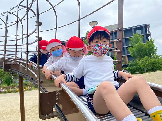 「一緒に滑り台滑ろ~!」