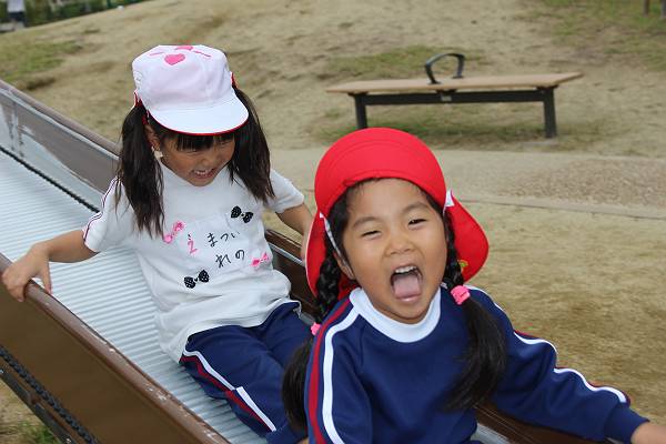 滑り台をしたり
