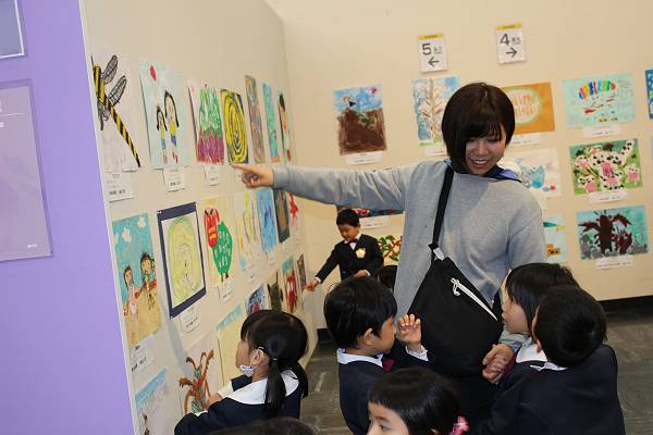 先日のオープニングには緑組さんが参加しましたが、今日は黄組さんが高島屋の絵画展に急きょつれていってもらえることに!