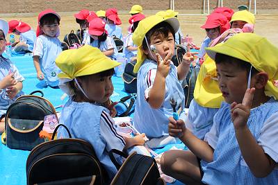 体育遊びの成果を見てもらえた子ども達。