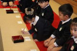 園長先生のお話を聞いたり、お茶と茶団子をいただいたりと