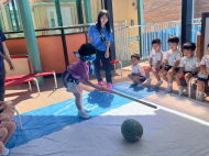 目隠しをして挑戦するお友だちも