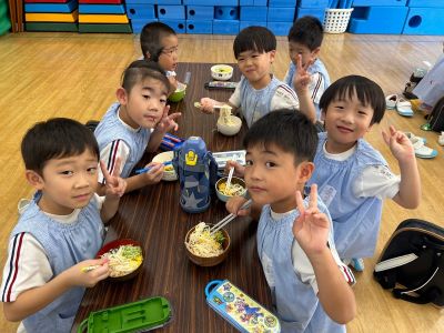 朝から「そうめん楽しみ!」「いっぱいおかわりする!」と会食を楽しみにしながら登園して来てくれた子どもたち