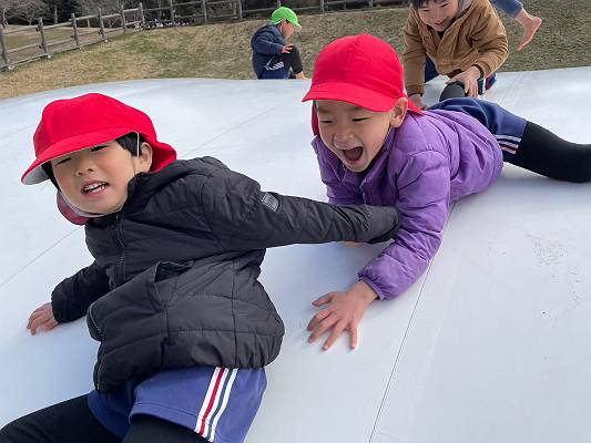 お友だち同士で協力しながら上の方まで登れるようになりました![]()