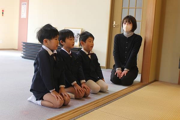 お部屋に入る時は正座をしてまっすぐ園長先生の方を見て、、