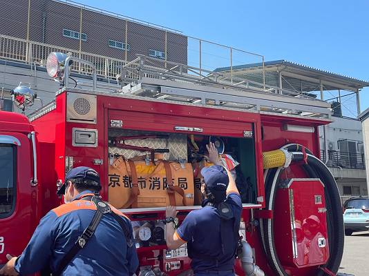 避難訓練が終わったら、次は消防車に会いに行って来ました!!