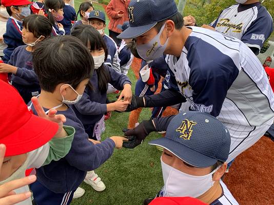 日本新薬さんの野球選手の皆さんとTボール♪