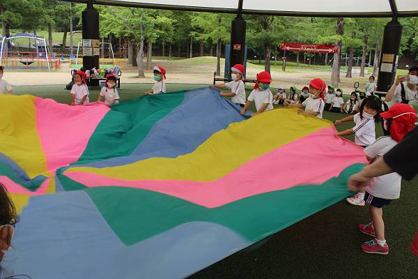 広場で音楽に合わせて”パラバルーン”をしました♪