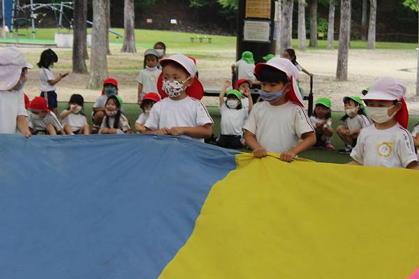 広場で音楽に合わせて”パラバルーン”をしました♪